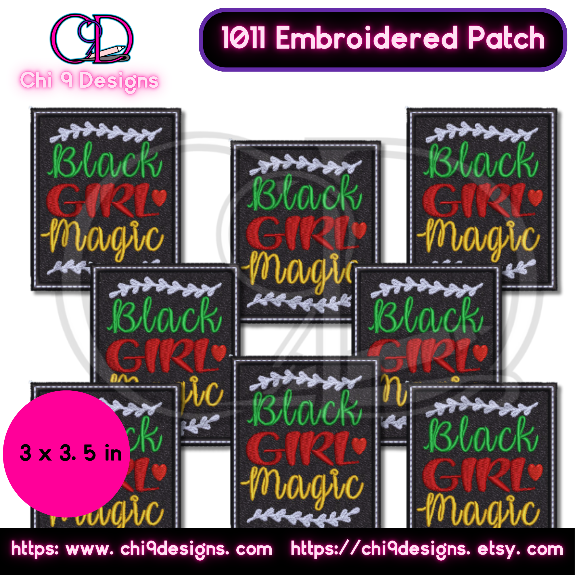 1011 Embroidered Patch featuring the powerful "Black Girl Magic" message. This vibrant patch showcases bold, eye-catching embroidery in colors that symbolize strength, pride, and joy. The intricate stitching ensures that the design is both detailed and durable, allowing you to proudly display it on a variety of items such as jackets, backpacks, or even a favorite tote bag. Measuring at 3 x 3.5 inches, this patch is the perfect size to make a statement without overwhelming your style. The patch also comes with an adhesive backing for easy application, and its high-quality construction means it will stand up to daily wear. Celebrate your magic and let the world know who you are with this beautifully crafted embroidered patch