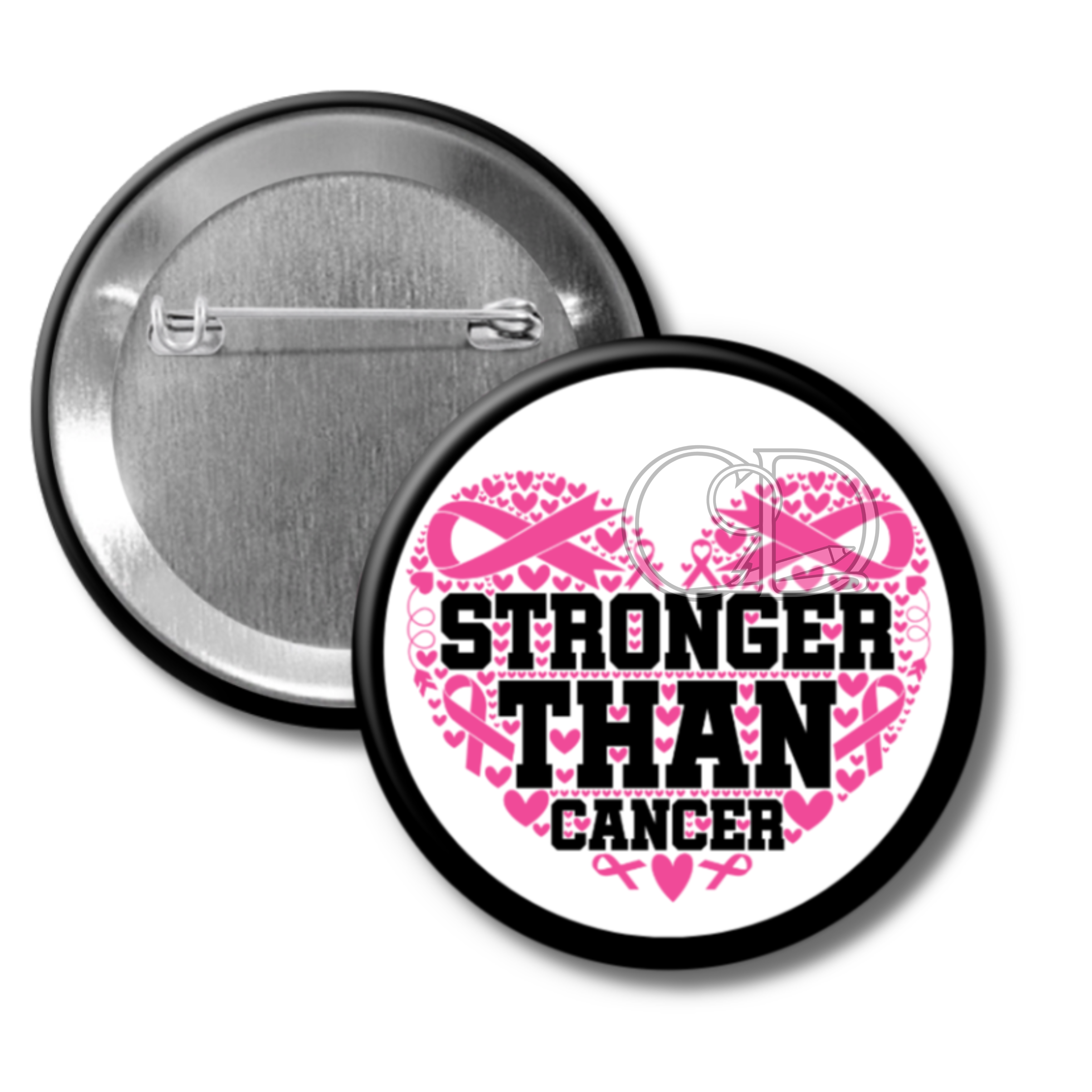 Carry a powerful reminder of resilience with the Stronger Than Cancer pinback button from Chi 9 Designs.This glossy metal button features a bold black font surrounded by pink ribbons and hearts, symbolizing love, hope, and victory over struggle. Perfect for survivors, warriors, and those walking beside them, it’s a daily badge of strength and courage.Lightweight yet durable, it’s ideal for jackets, bags, or lanyards—anywhere you want to show your support and power.Wear it as a proud declaration: you are stronger than anything life puts in your way.Available in 1n., 2.5 in., 3 in., and 3.5 in.